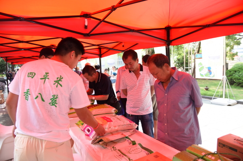 在“四平米 香八婺”暨吉林大米金华行主题推会活动中,金华市民踊跃选购四平米